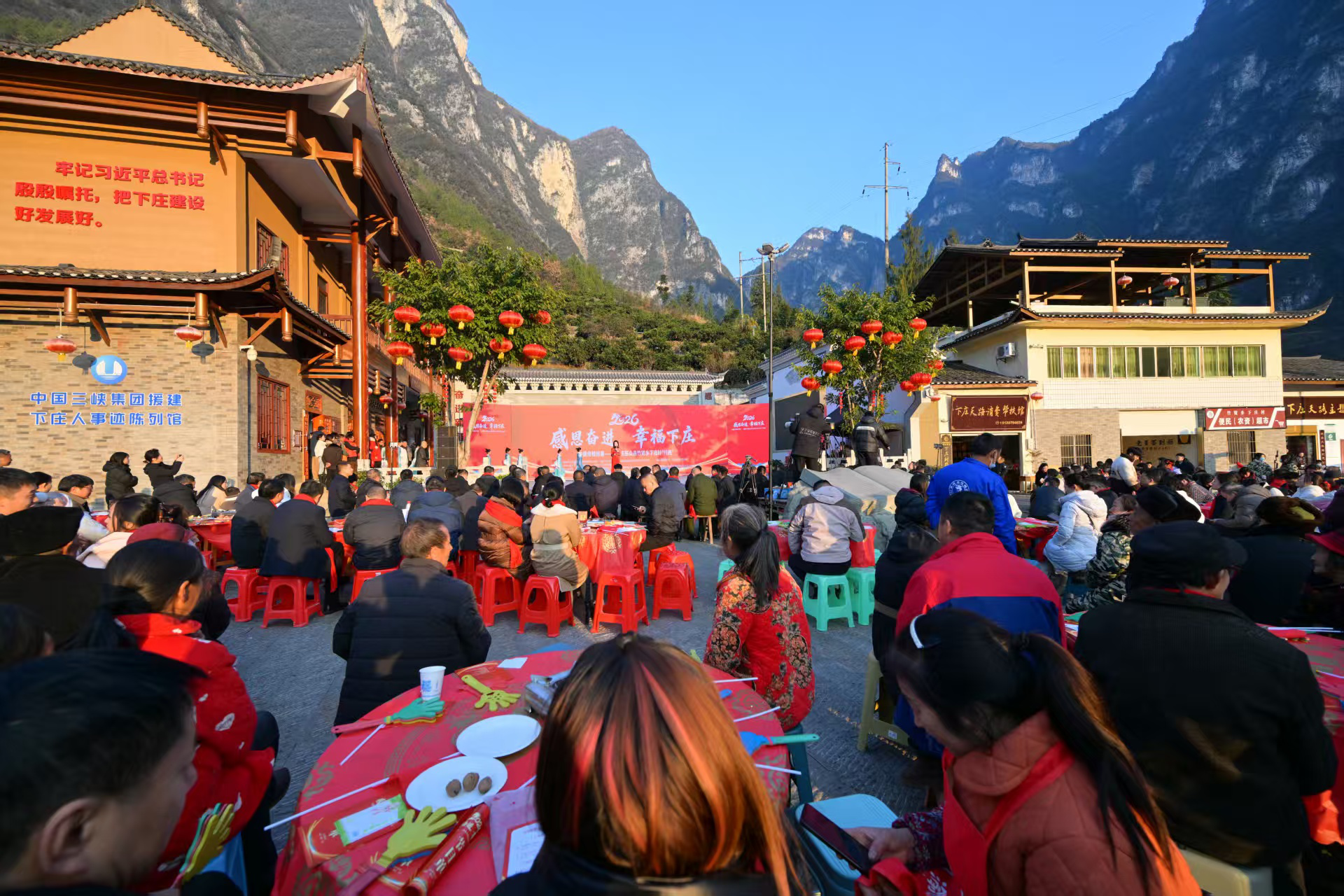 今年的“村晚”以“赛年关、看年戏、赶年集、吃年饭、忆年轮、品年俗”为主线,营造出“感恩奋进 幸福下庄”的浓厚氛围。市文化旅游委驻巫山县竹贤乡工作队组织帮扶集团21位驻村第一书记开展直播带货活动,助力消费帮扶,中国邮政巫山分公司、巫山村播联盟、下庄e路工作室、石沟村微信视频号、龙溪镇抖音号等5个直播团队参播,直播间累计点赞数4000余万人次、新增粉丝量近5000人、销售总额17.85万元。为进一步提升展现下庄村的幸福生活,驻竹贤乡工作队还邀请了重庆陆海国际传播公益基金会开展“乡助阅读·幸福影像计划”,为村民拍摄全家福与生活影像,记录下庄乡村振兴中的温暖笑脸与幸福瞬间。