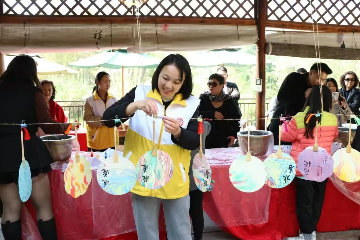 (新加坡游客在和平新村体验非遗)