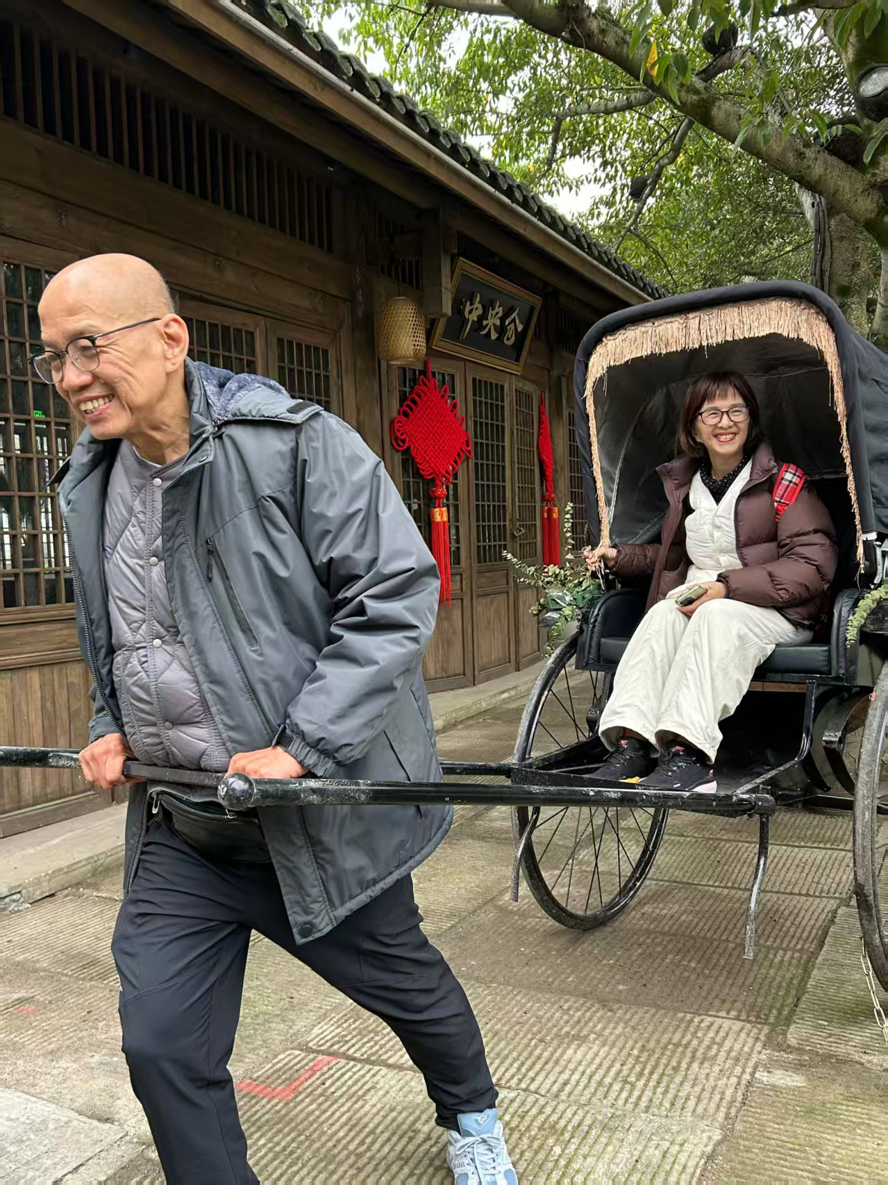 (马来西亚游客在偏岩古镇体验“拉黄包车”)