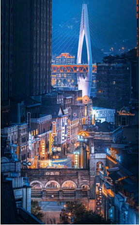 渝中半岛首席“巴渝文化时尚转化场”。以“文化场景化、场景时尚化”为核心理念,打造集本土美学、时尚消费、沉浸演艺于一体的文商旅融合示范区。