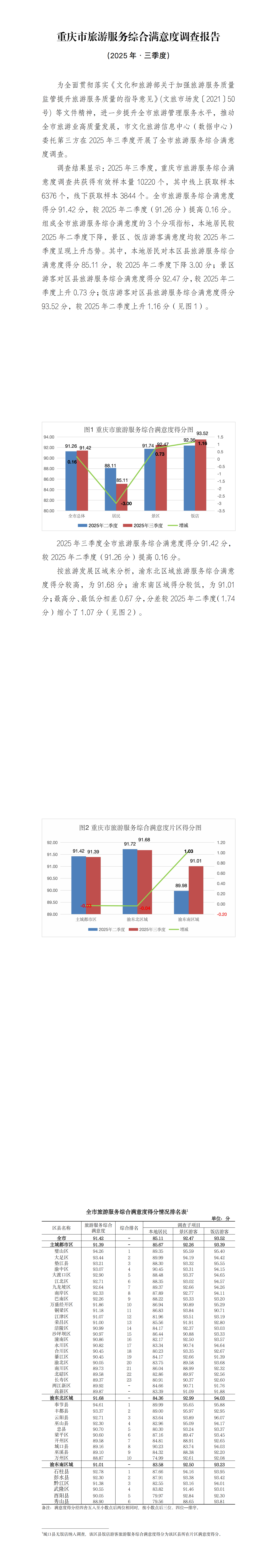 重庆市旅游服务综合满意度调查报告 (2025年·三季度)