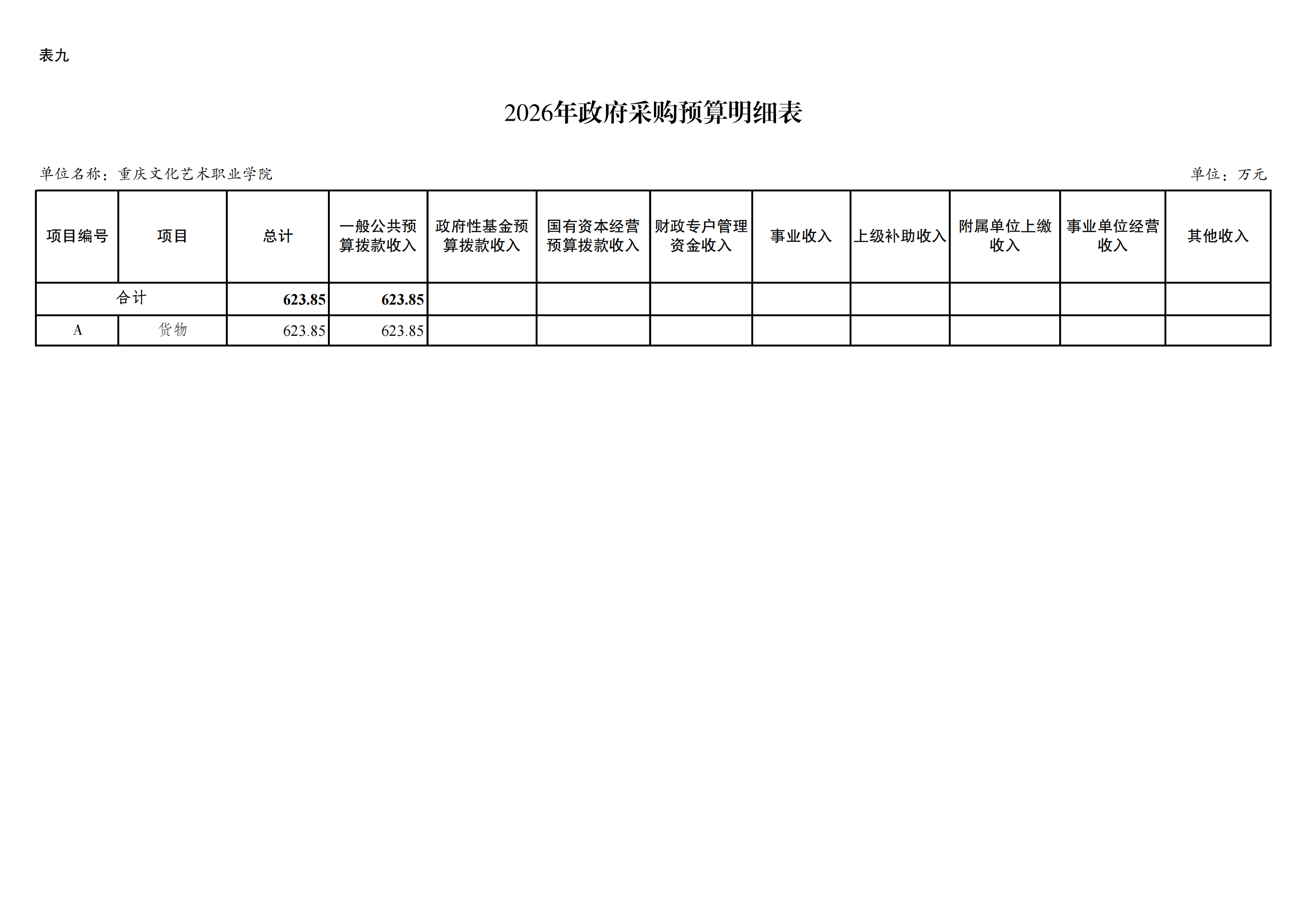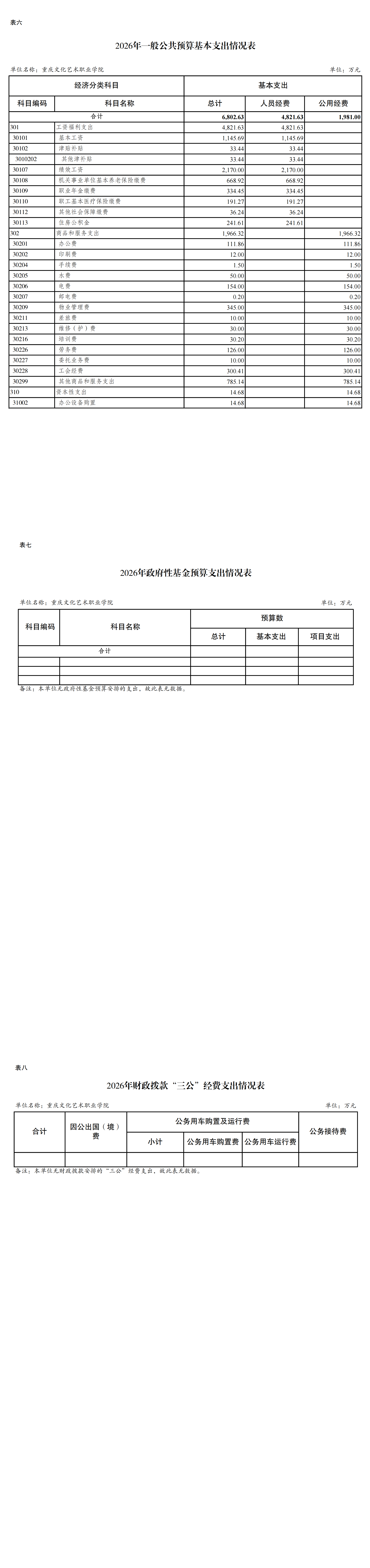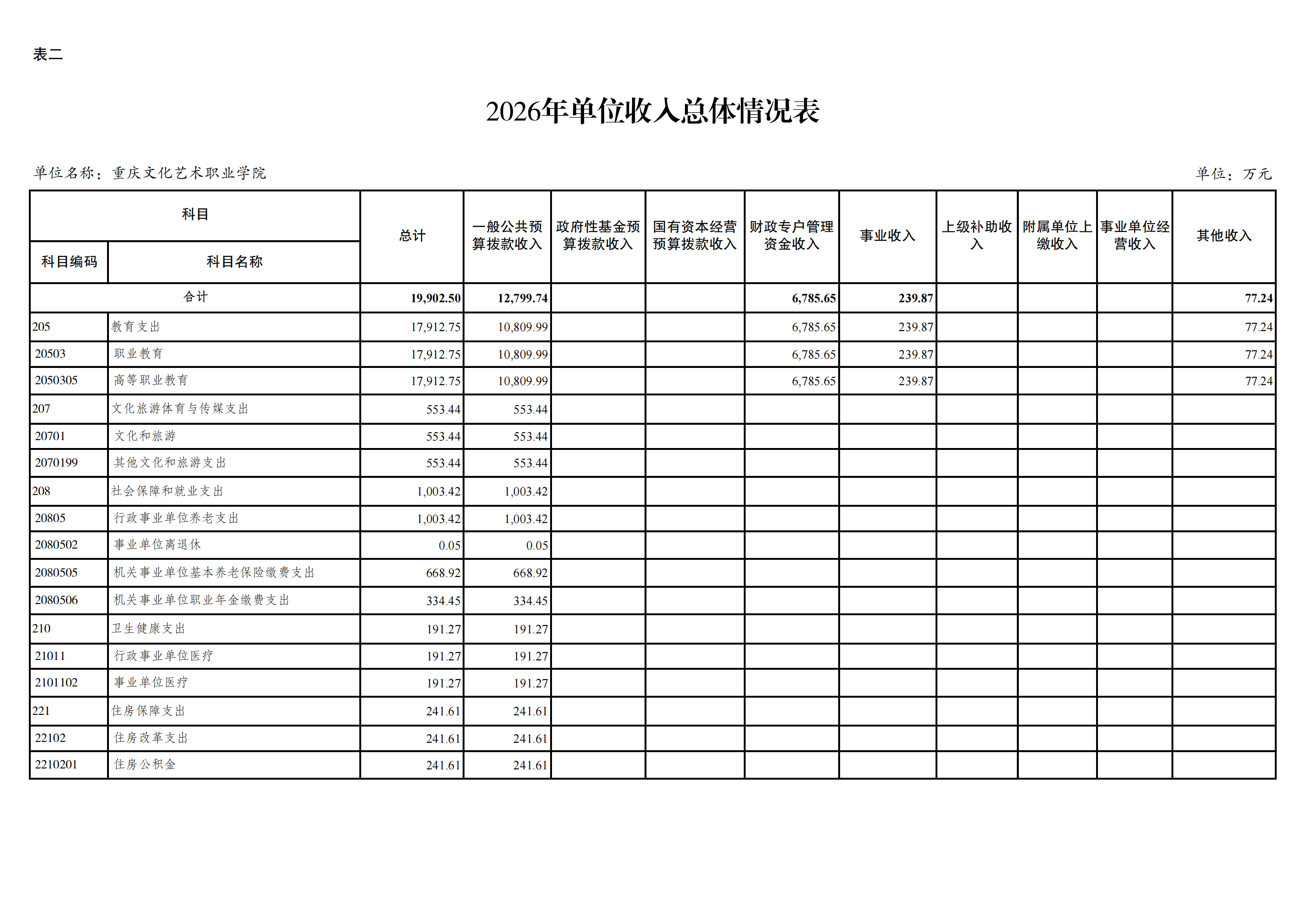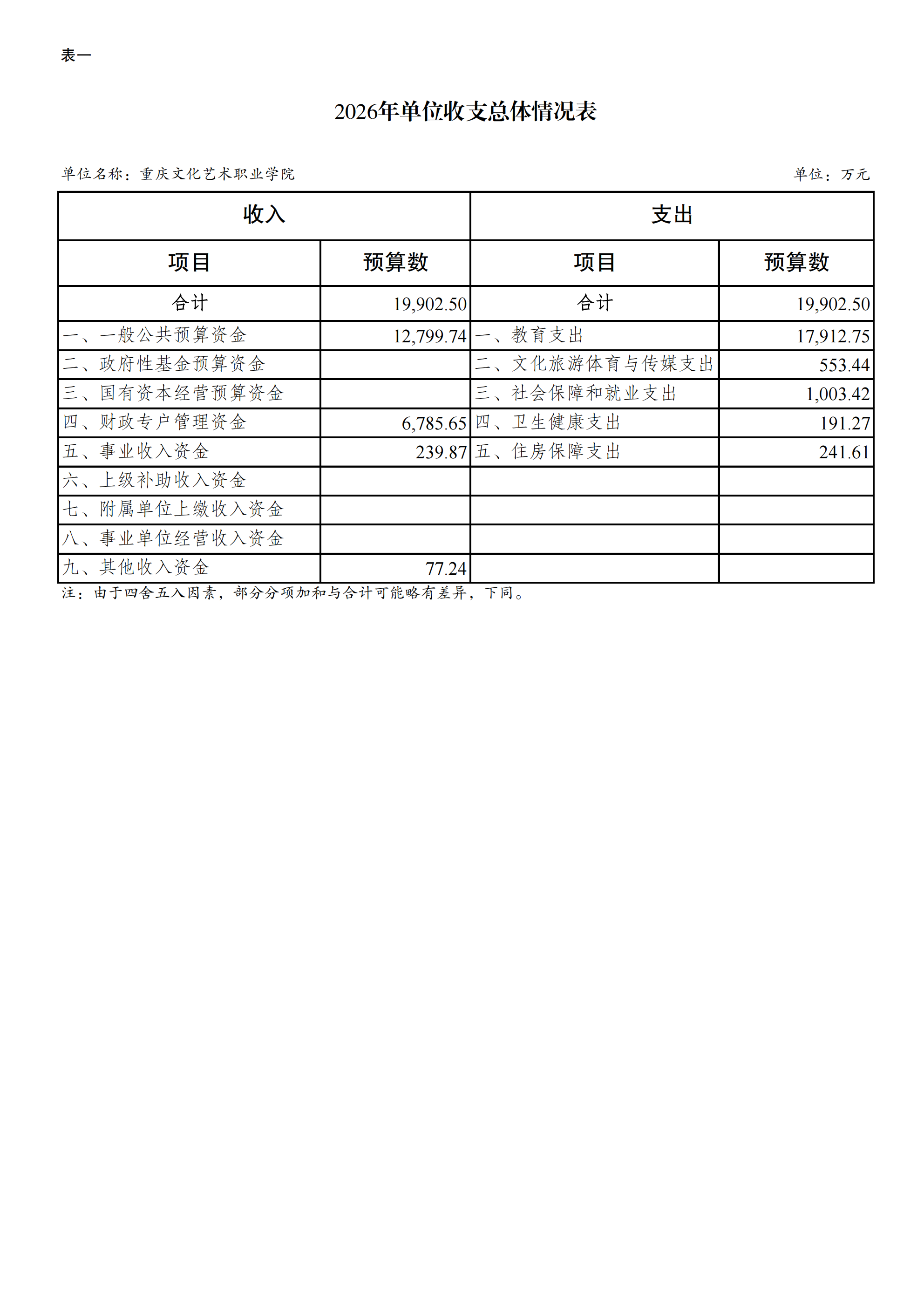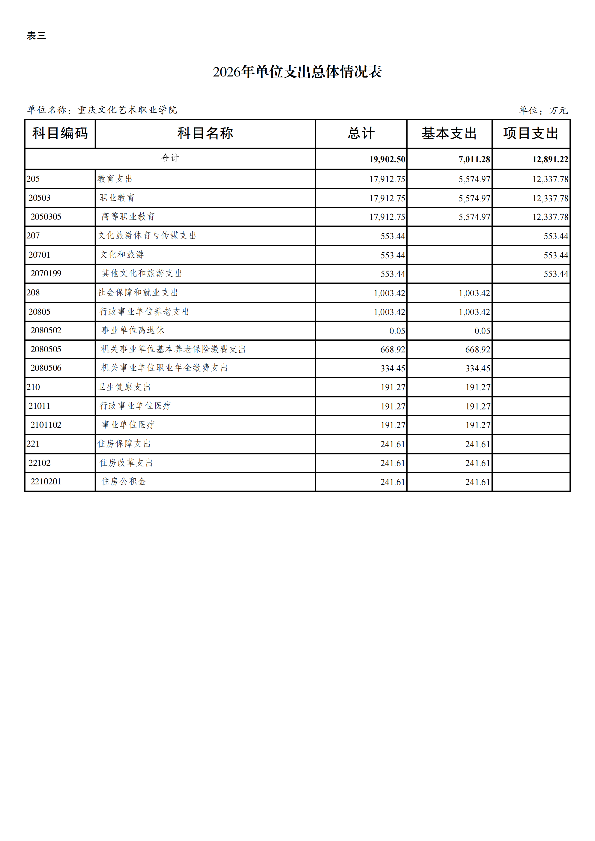 重庆文化艺术职业学院2026年单位预算情况说明