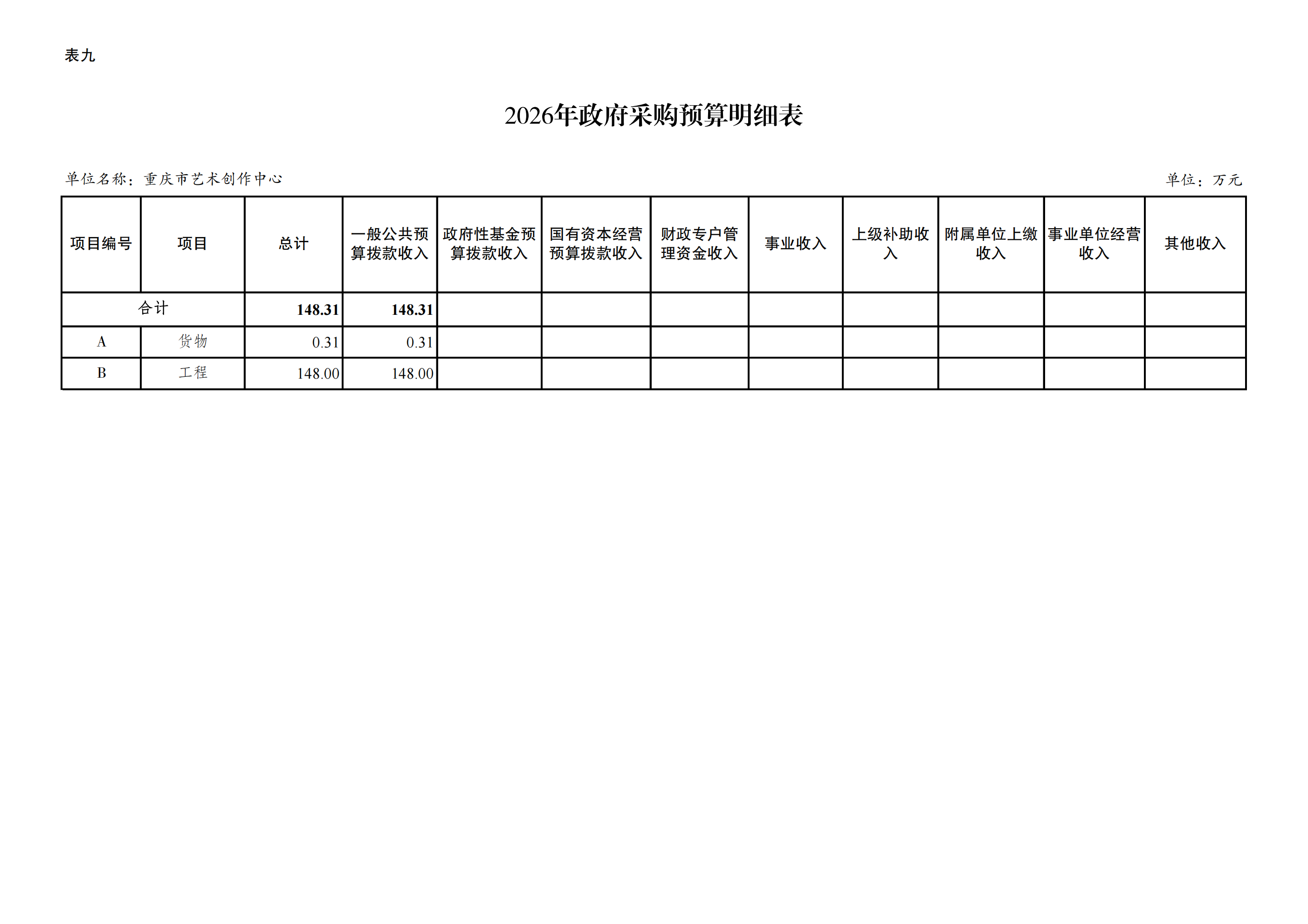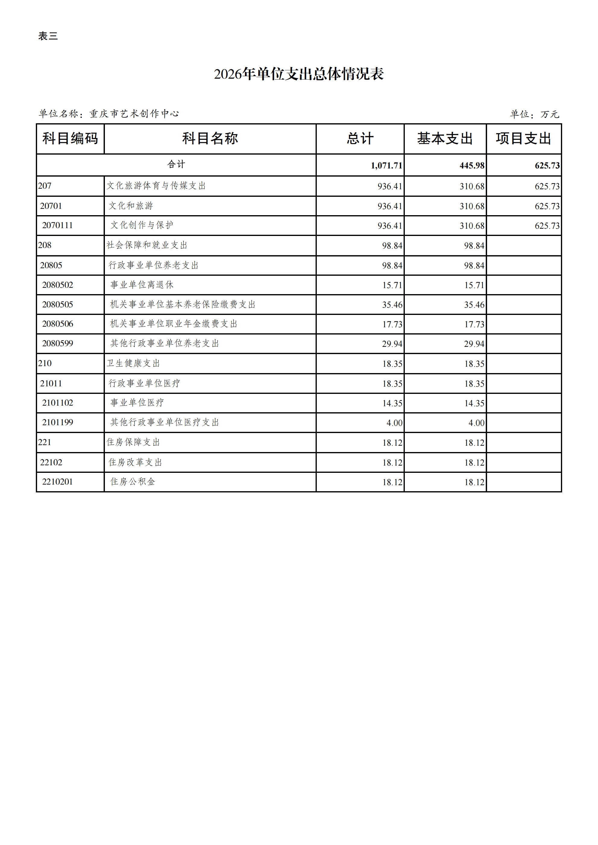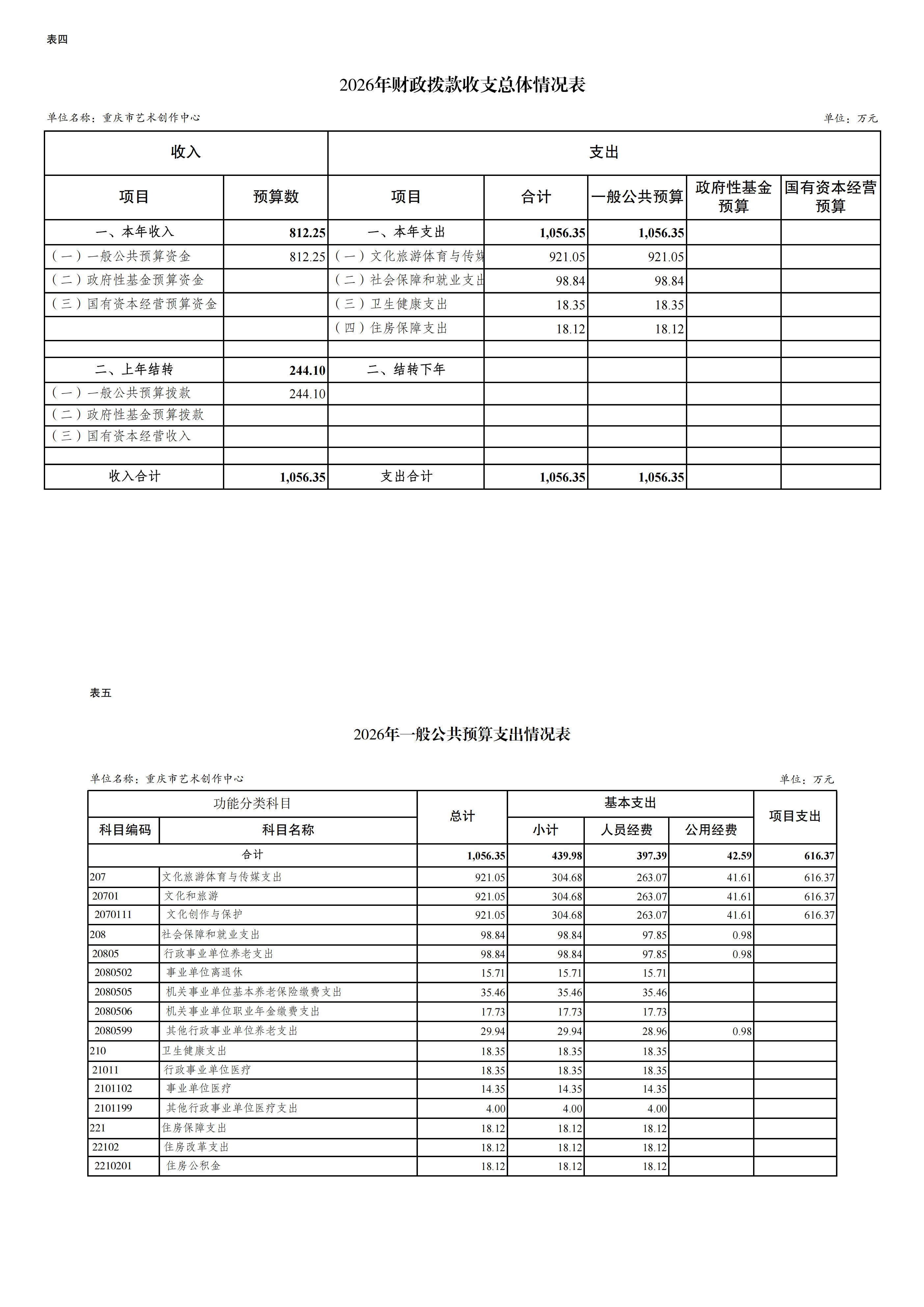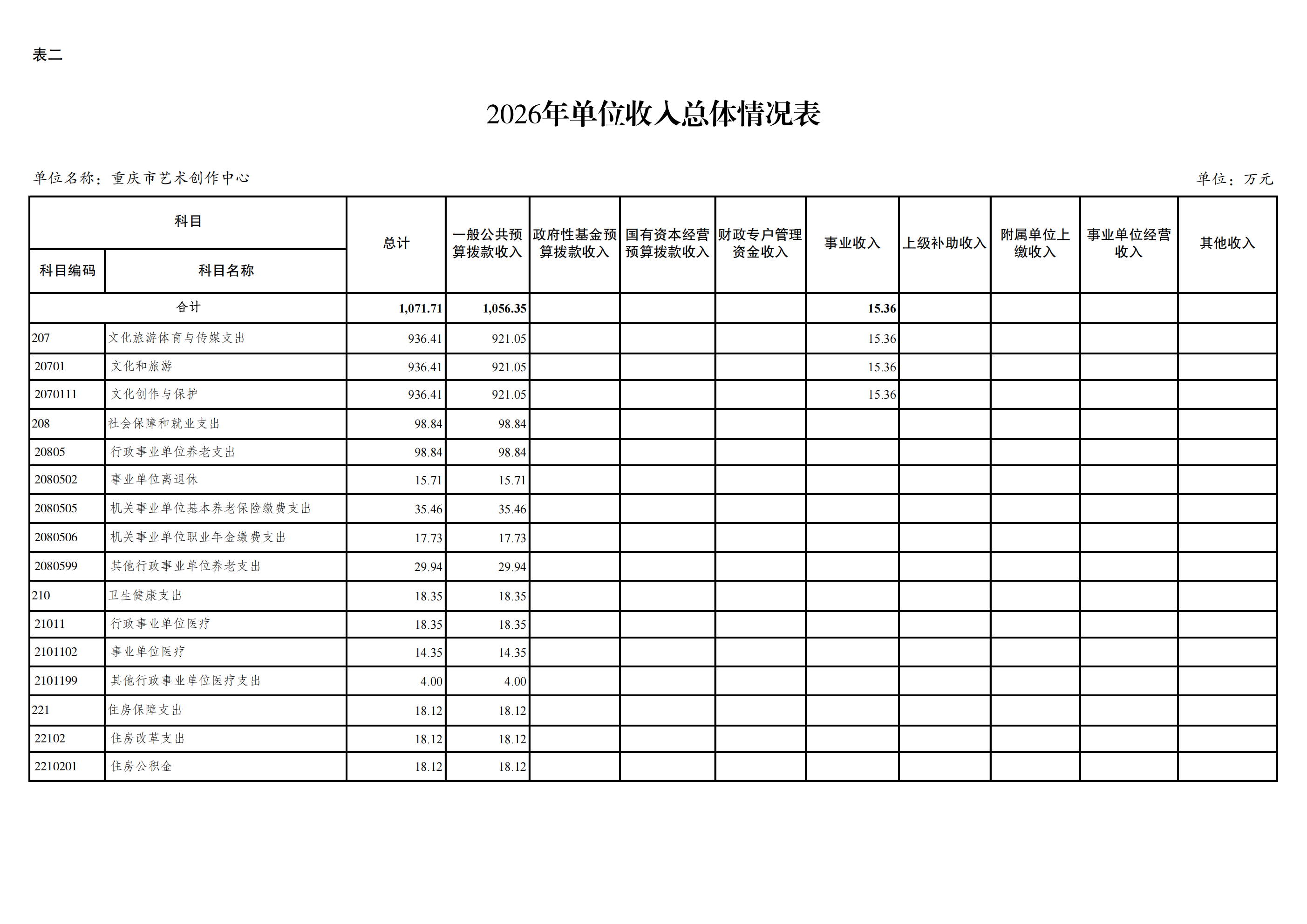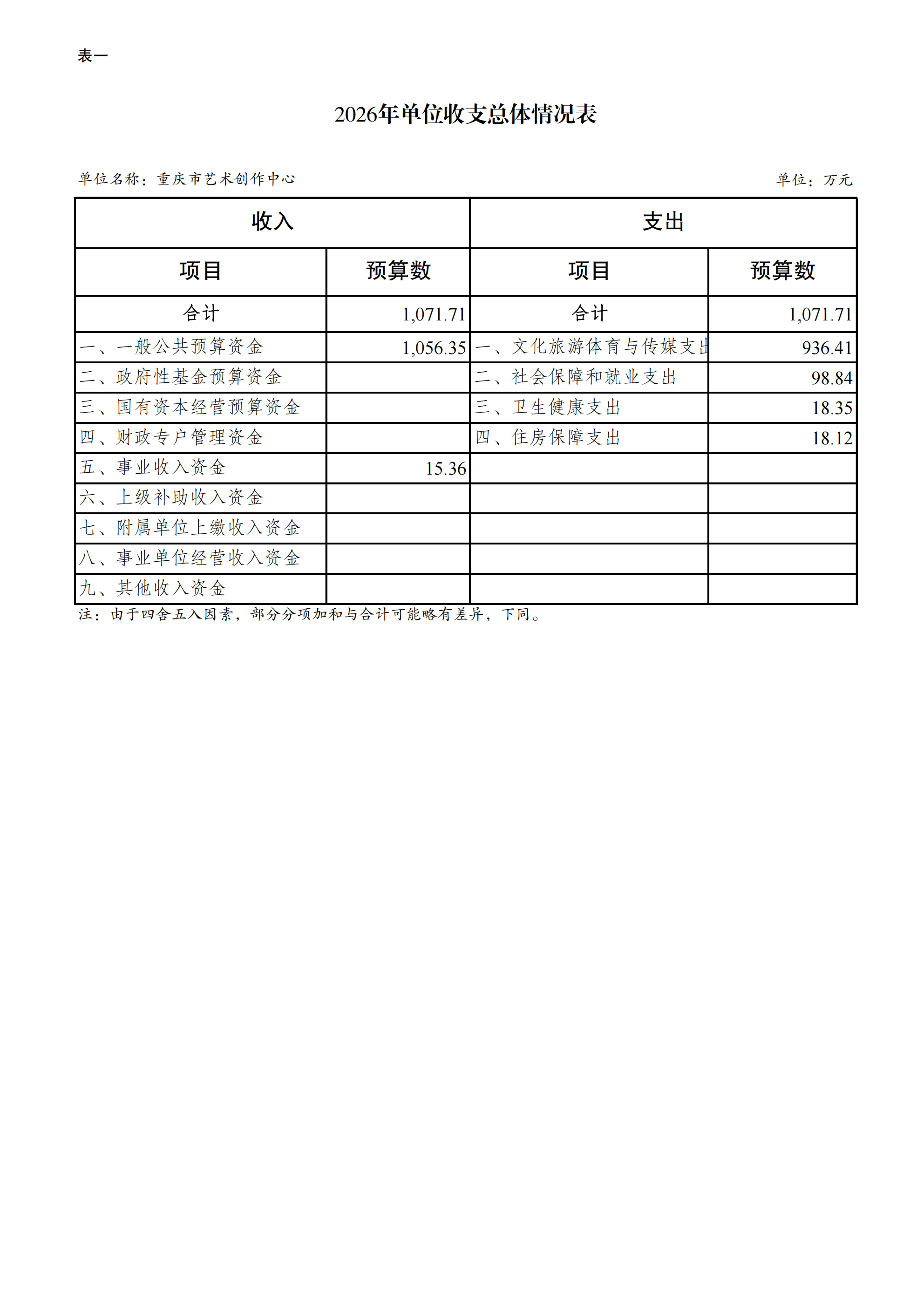 重庆市艺术创作中心2026年单位预算情况说明