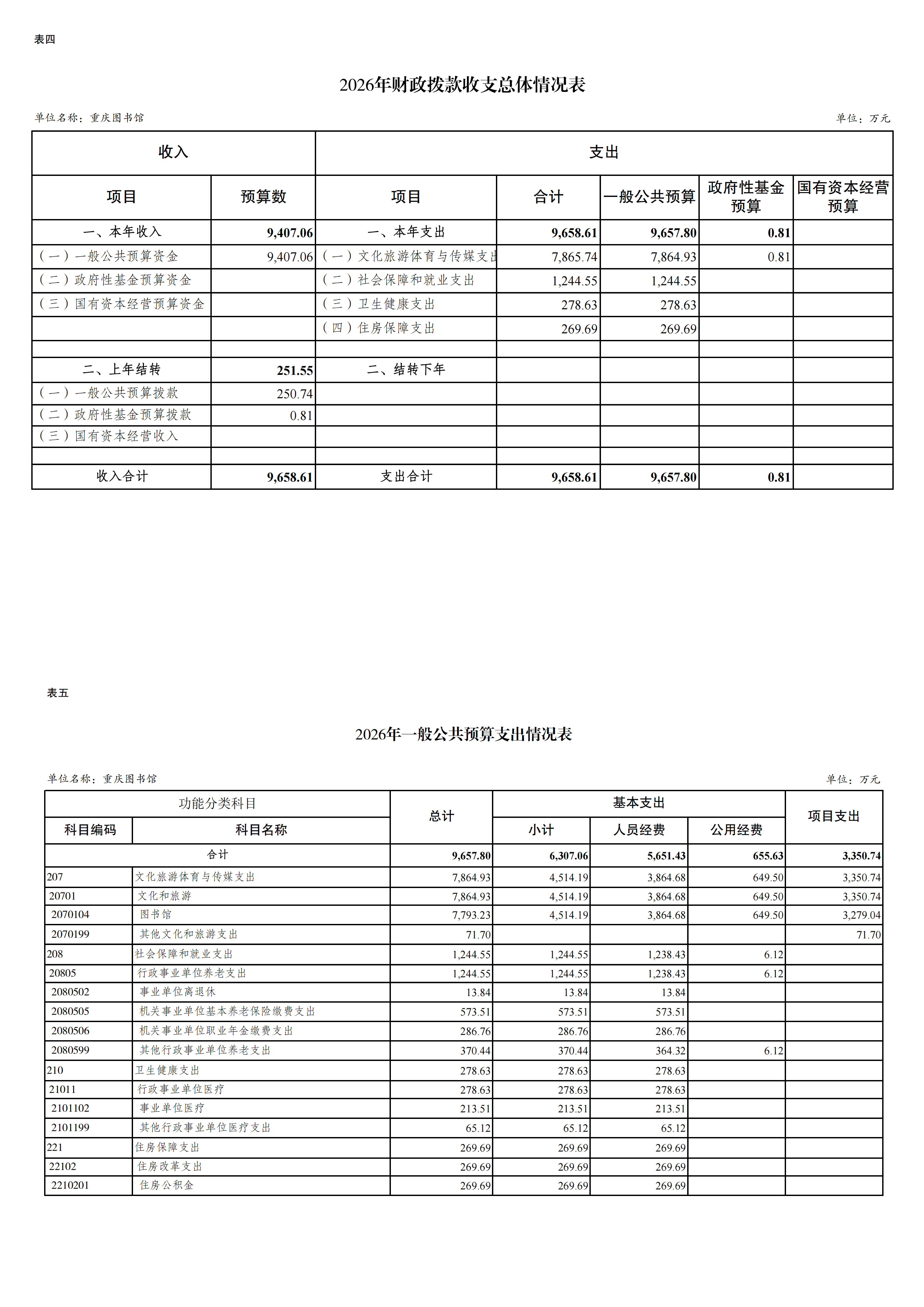 重庆图书馆2026年单位预算情况说明