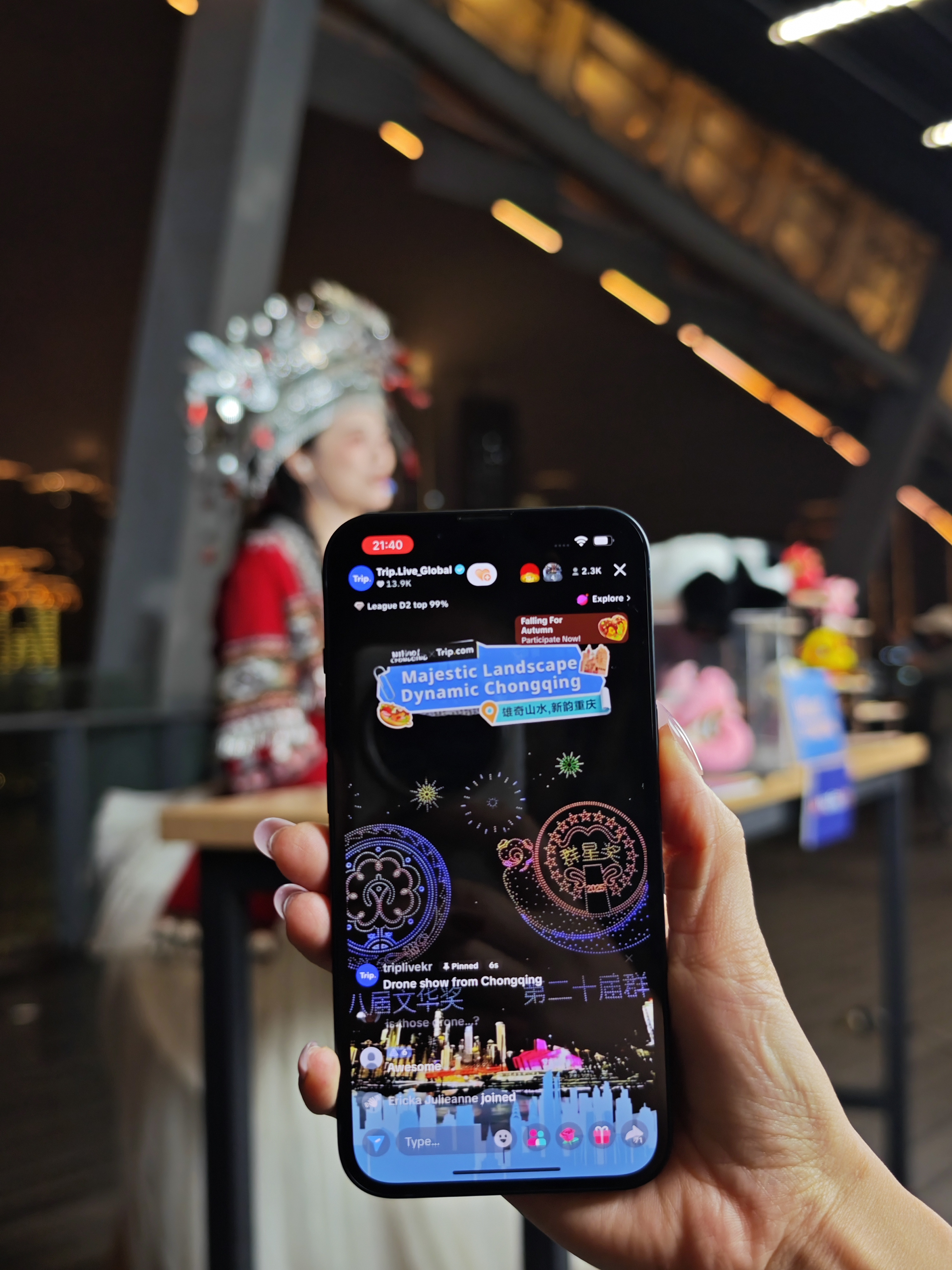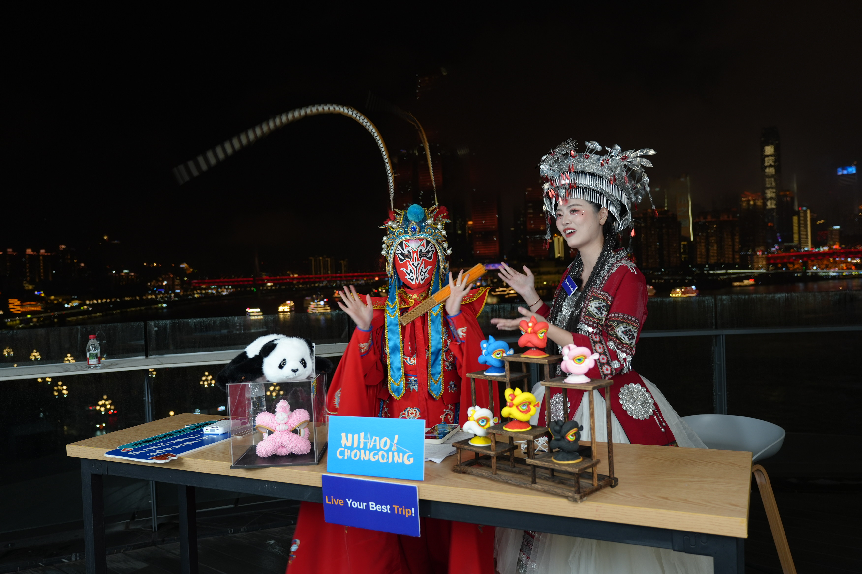 ——文化融合层面,直播紧扣第十四届中国艺术节在川渝举办契机,融入“新韵重庆”无人机灯光秀,用光影勾勒重庆山水人文;川剧变脸等非遗表演同步上演,既彰显中国艺术魅力,又精准契合国际游客对中华文化的兴趣,强化跨文化情感联结。