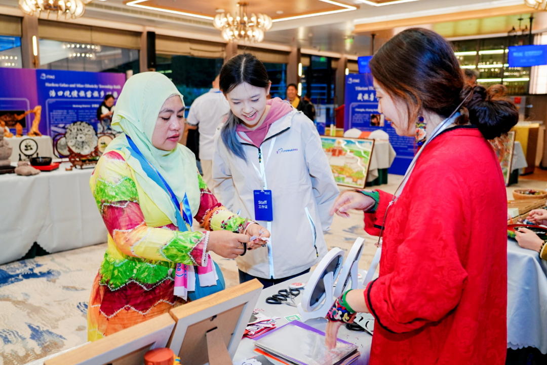 嘉陵江段夜游期间,除了“千余千寻”的洪崖洞等绝色夜景地标引得嘉宾纷纷拍照留念外,游轮内的特色展陈也成为嘉宾关注的焦点。非遗展陈专区亮点纷呈,共涵盖12个品类的非遗作品:重庆10个区县各带来1种核心非遗技艺代表作,包括彭水苗族银饰锻制、奉节木雕、九龙坡剪纸、潼南竹麻编、沙坪坝漆器、渝中区蜀绣、石柱棕编、武隆蜡染等,再搭配昌都唐卡与江津玉两类特色非遗展品,每一件作品都承载着传统文化的深厚底蕴,精美的工艺、独特的韵味让嘉宾们驻足观赏、细细品鉴,近距离感受非遗技艺的独特魅力。特色医疗展区也是人头攒动、广受欢迎,重医附一院、重医附二院、重庆市中医院、重庆市儿童医院、重庆市人民医院等知名医疗机构集中展示核心成果,工作人员现场细致解答咨询,嘉宾们纷纷驻足了解重庆医疗技术发展的新成果,对重庆优质的医疗资源给予高度认可。同步展出的精品美图展区,渝中、沙坪坝、九龙坡、大足、潼南、武隆、奉节、巫山、石柱、彭水等10个区县(自治县)各2幅的优质作品,全方位展现了当地的自然风光与人文风情。